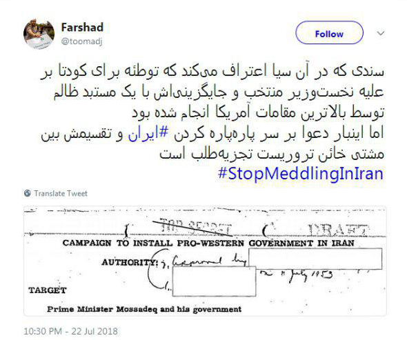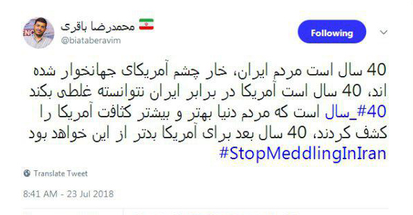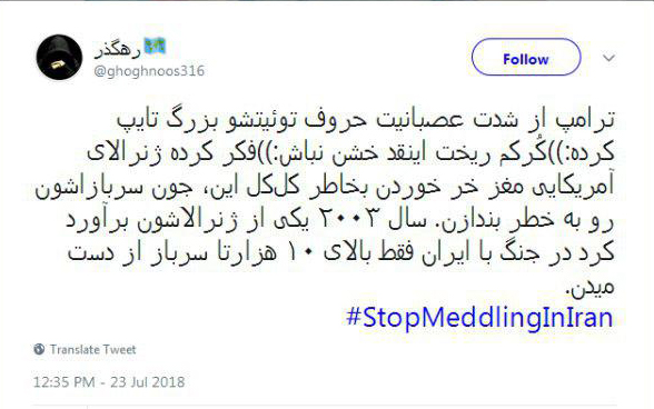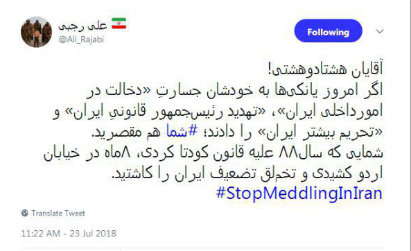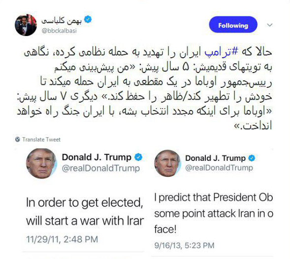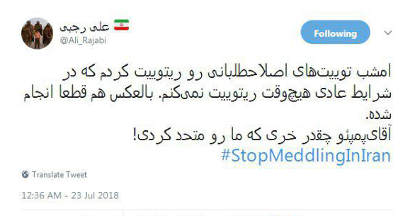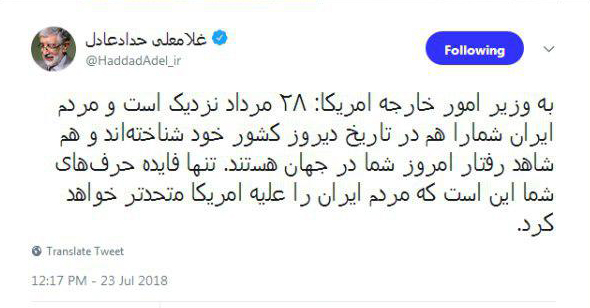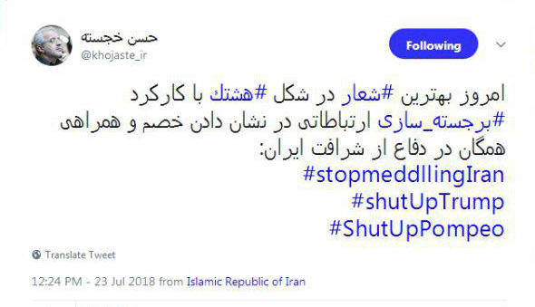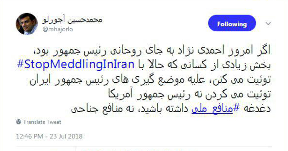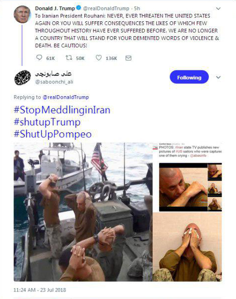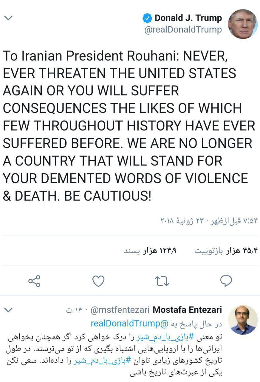 گروه سیاسی الف - روز گذشته حسن روحانی رئیسجمهور کشورمان خطاب به اظهارات و اقدامات غیرقانونی دونالد ترامپ گفت: ما مرد شرف و ضامن امنیت آبراه منطقه در طول تاریخ هستیم، با دم شیر بازی نکن، پشیمانکننده است.