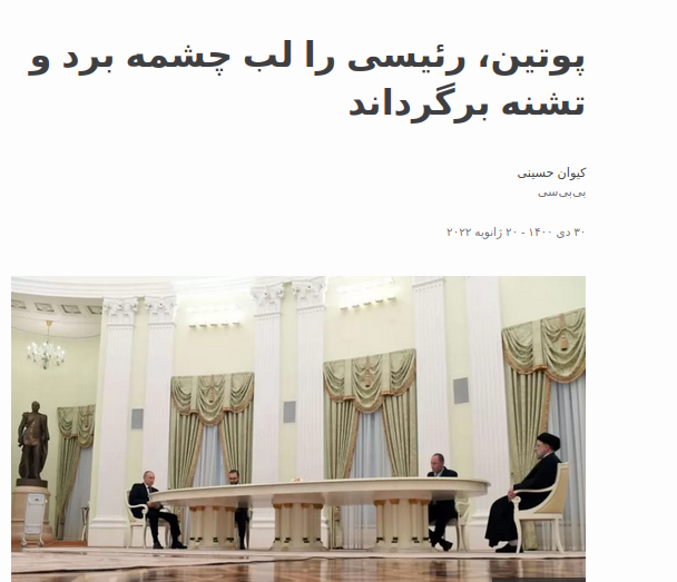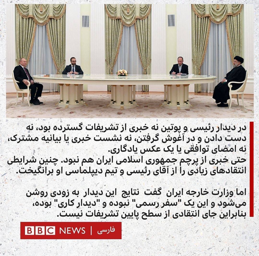 این خبری است که بی بی سی فارسی از دیدار مکرون و پوتین منتشر کرده است .از این نحوه رفتارهاست که دم خروس ادعای مضحک بی طرفی رسانهای بیرون میزند و نشان میدهد بی بی سی تا چه حد از سیاست یک بام و دو هوا تبعیت میکند. !