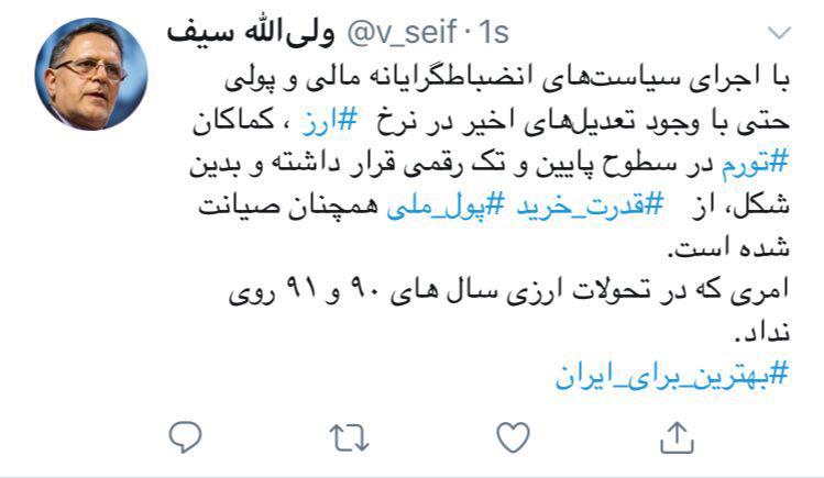 8 فرودین 96: توئیت رئیسکل بانک مرکزی درباره بازار ارز و تورم