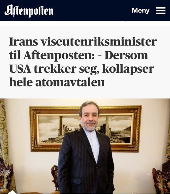 سید عباس عراقچی معاون سیاسی وزیر امور خارجه ایران که به اسلو سفر کرده بود، در گفتوگو با روزنامه «آفتن پوستن» نروژ درباره نقض برجام توسط آمریکا گفت: ایران آماده است تا برنامه هستهای خود را دوباره از سر بگیرد. وی اضافه کرد: متاسفانه آمریکا جو ناپایداری و تردید ایجاد کرده است که بر تمایل شرکتهای خارجی برای سرمایه گذاری در ایران تاثیر میگذارد و در نتیجه ما کمتر از آنچه که در ازای رفع تحریمها باید میداشتیم ، به دست آوردهایم.