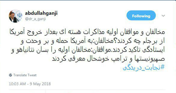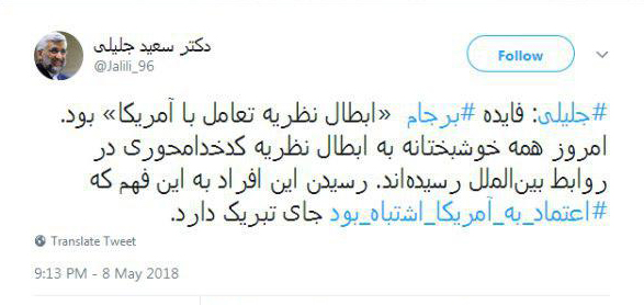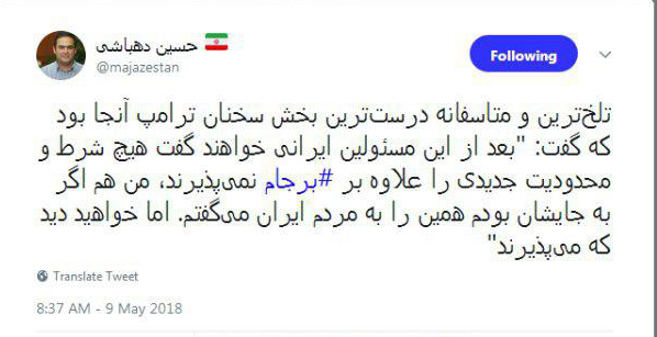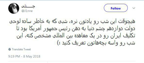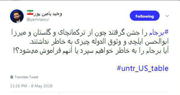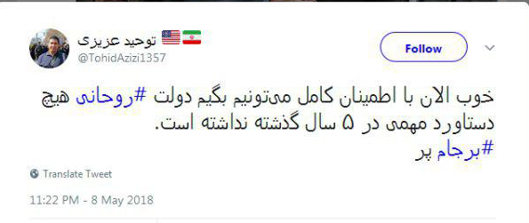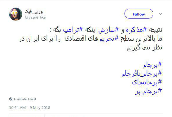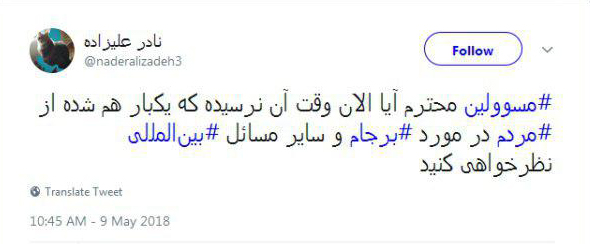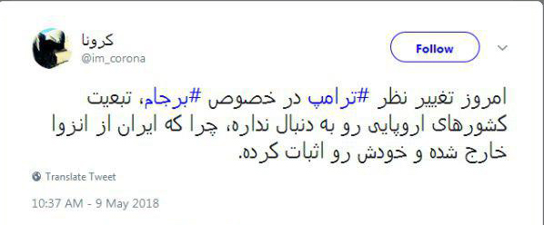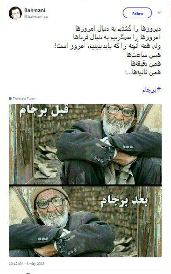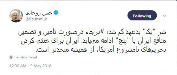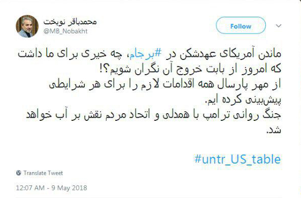 رئیس جمهور آمریکا باید هر 120 روز یک بار طرح تمدید تعلیق تحریمهای ایران را امضا کند؛ لذا این بار وی تا 12 مه فرصت دارد تا درخصوص امضای این طرح و ماندن یا عدم ماندن در برجام تصمیم بگیرد. ترامپ دوشنبه (اینجا) اعلام کرد ساعت 2 بعد از ظهر روز سهشنبه (۲۲:۳۰ امشب به وقت تهران ) تصمیم نهایی خود در خصوص خروج یا عدم خروج از توافق هستهای ایران (برجام) را به صورت علنی اعلام خواهد کرد؛ این اعلامِ زودتر از موعد تا حدودی موجب غافلگیری همگان شده است.