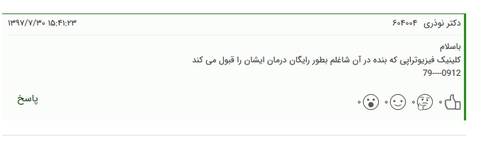 خبرنگار الف برای بررسی این موضوع با دکتر بهزاد نوذری پزشک فیزیوتراپی که این کامنت را درج کرده بود، تماس گرفته و ایشان اعلام کردند در یک مرکزی درمانگاهی در منطقه تهرانپاس به نام الزهرا مشغول فعالیت است و این مرکز درمانی حاضر است درمان این بازیگر سینما و تلویزیون کشورمان را به صورت رایگان انجام دهد.