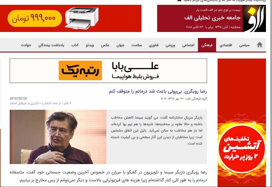 به گزارش الف، امروز پس از انتشار خبری با عنوان «رضا رویگری: بیپولی باعث شد درمانم را متوقف کنم» یکی از مخاطبان الف که پزشک فیزیوتراپ در یکی از کلینیکهای شرق تهران هستند، در کامنتی در خبر با مورد اشاره عنوان کردند «کلینیک فیزیوتراپی که بنده در آن شاغلم به طور رایگان درمان ایشان را قبول میکند» و شماره همراه خود را درج کرده بودند.