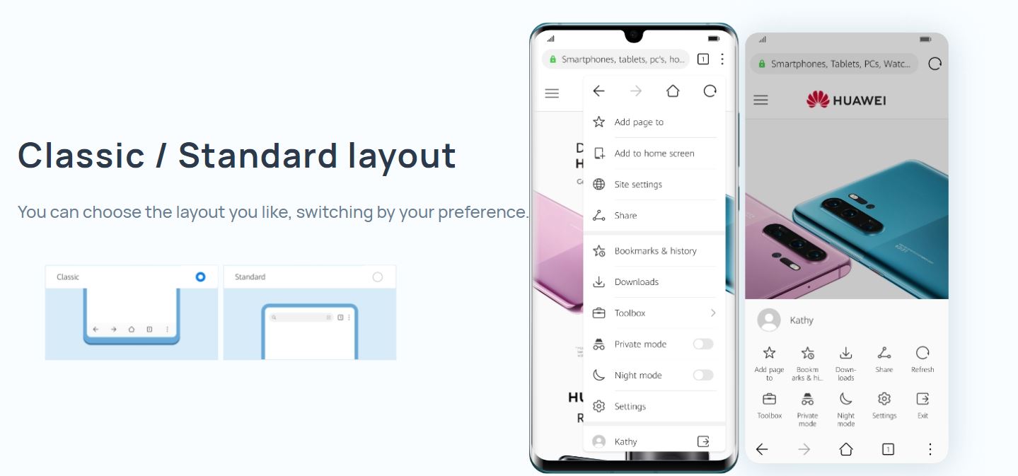 Huawei Browser یک مرورگر همراه امن با کاربری آسان محسوب میشودکه با درنظر گرفتن امنیت و حریم خصوصی کاربران توسعه یافته است. تا اواخر فوریه ۲۰۲۰ میلادی بیش از ۲۰۰ میلیون کاربر فعال ماهیانه از این مرورگر هوآوی برای وبگردی استفاده کردهاند.