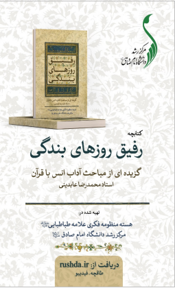 کتابچه «رفیق روزهای بندگی»؛ گزیده ای از مباحث آداب انس با قرآن کریم استاد محمد رضا عابدینی که به همّت هسته منظومه فکری علامه طباطبایی (رض) مرکز رشد دانشگاه امام صادق (ع) تنظیم شده، درقالب فایل الکترونیک به صورت مجازی منتشر شد. این کتابچه شامل سی نکته معرفتی کوتاه متناسب با ایّام ماه مبارک رمضان تنظیم شده که به دلیل شرایط ویژه ابتلاء اجتماعی کرونا و محدودیت های دسترسی به جلسات عمومی انس با قرآن کریم، به صورت مجازی توزیع می گردد.