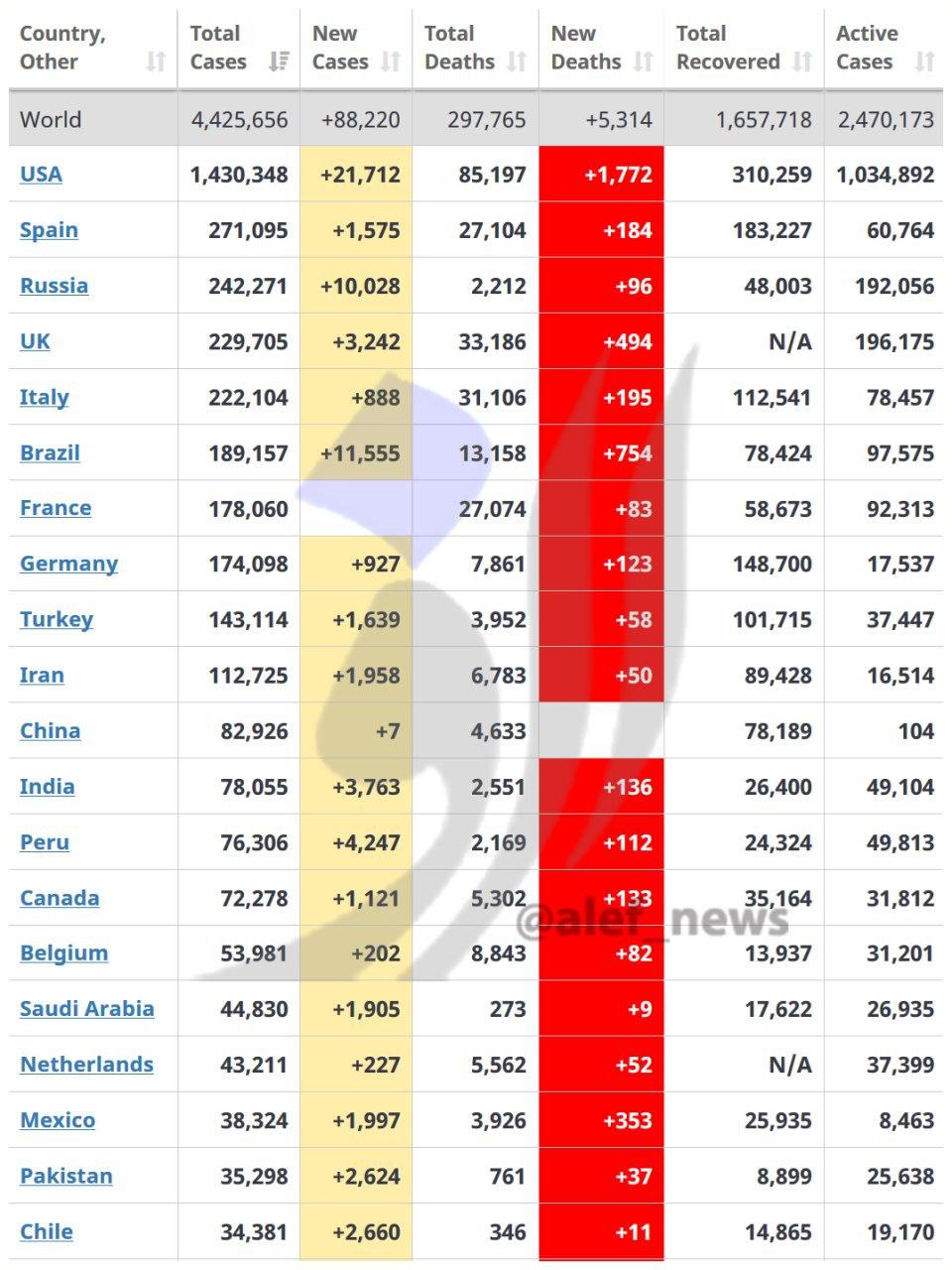 آمار بروز جهانی درباره کرونا/ ابتلا در ترکیه از ۱۴۳ هزار نفر گذشت