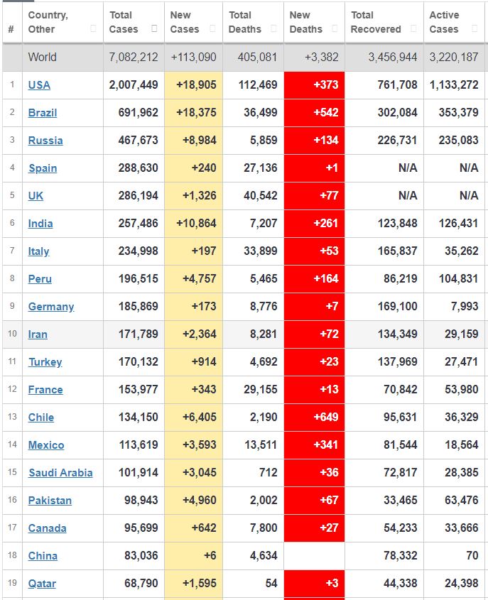 آمار بهروز جهانی درباره کرونا/ تعداد مبتلایان آمریکا به دو میلیون نفر رسید