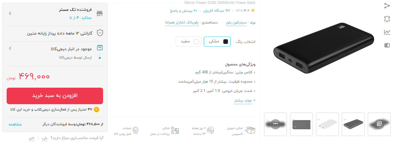 علاوه بر موارد ذکر شده، قیمت پیشنهادی، بازه زمانی ارسال کالا جزء عوامل مهم و تاثیرگذار برای به دست آوردن جایگاه جعبه خرید است. به عنوان مثال اگر کالا در مرکز پردازش دیجیکالا موجود بوده و یا بازه زمانی ارسال کمتر از دو روز باشد، کالا شانس بیشتری برای قرار گرفتن در این قسمت خواهد داشت.