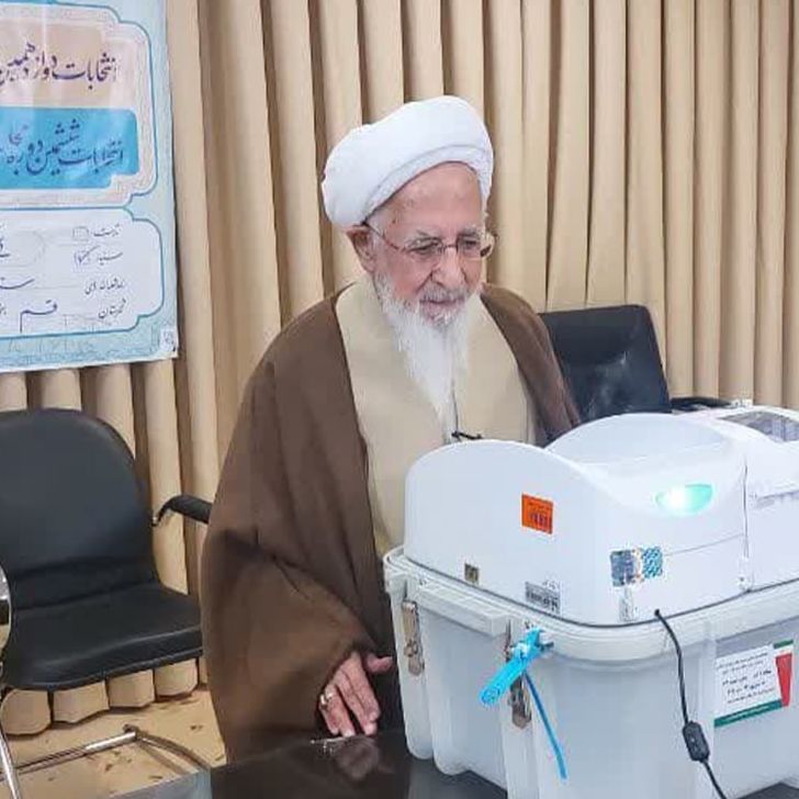 ۱۲:۲۸ آیتالله جوادیآملی رأی خود را به صندوق انداخت