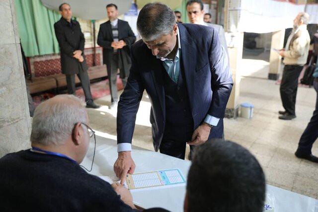 9:22 وزیر اقتصاد در مسجد لرزاده رای خود را به صندوق انداخت