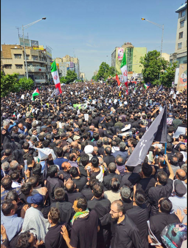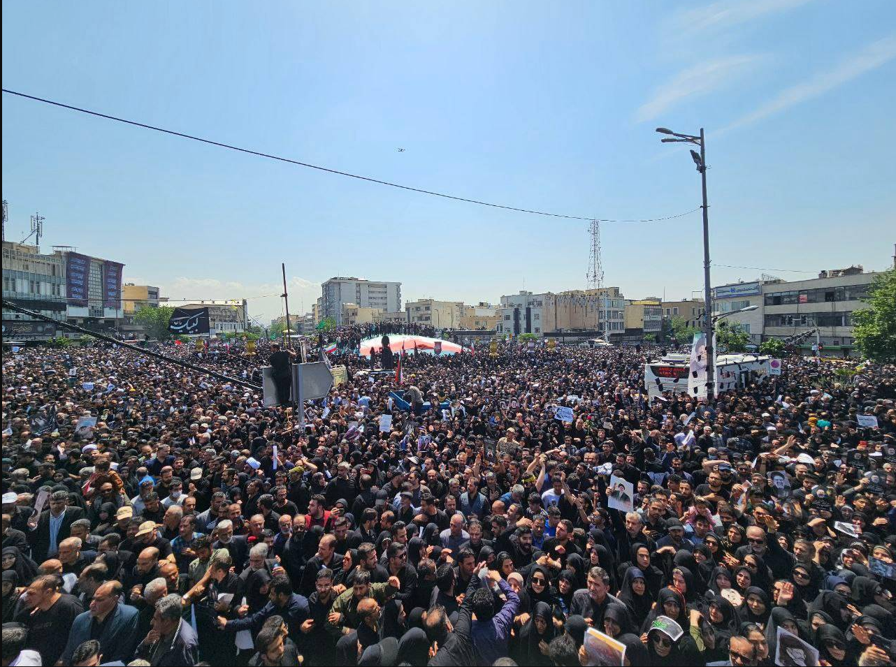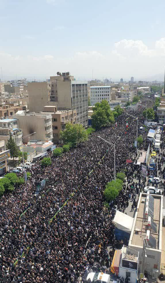 در این گزارش آمده است: در مرکز شهر، مردم در داخل و اطراف دانشگاه تهران با به دست داشتن تصاویر رئیسی گرد هم آمدهاند؛ جایی که آیتاالله خامنهای، رهبر انقلاب اسلامی بر پیکر رئیس جمهور و همراهانش از جمله حسین امیرعبداللهیان، وزیر خارجه نماز اقامه کردند.