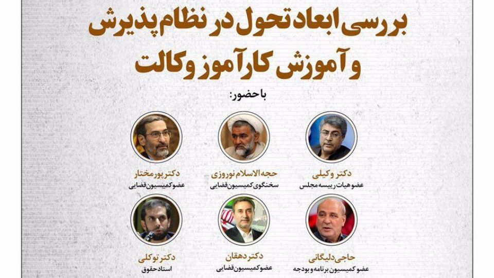 به گزارش الف در این گردهمایی که با موضوع بررسی ابعاد تحول در نظام پذیرش و آموزش کارآموز وکالت در فرهنگسرای ابن سینا برگزار می شود، آقایان نوروزی،پورمختار، دهقان اعضاء کمیسیون قضایی مجلس و آقایان وکیلی و حاجی دلیگانی از دیگر نمایندگان مجلس و همچنین تعدادی از اساتید رشته حقوق حضور خواهند داشت.