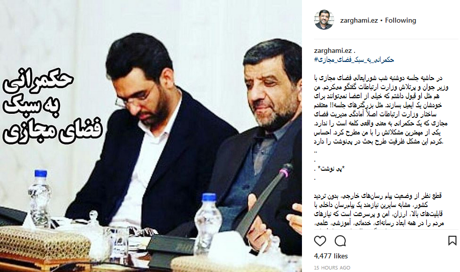 سید عزتالله ضرغامی عضو شورای عالی انقلاب فرهنگی و فضای مجازی با انتشار پستی در صفحهی اینستاگرام خود از نظر مشترک خود با محمدجواد آذری جهرمی وزیر ارتباطات و فناوری اطلاعات نوشت.