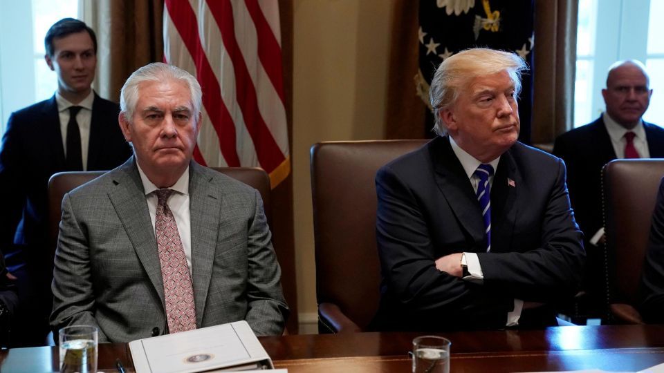 البته رئیسجمهوری آمریکا و وزیر امور خارجهاش بارها بهطور جدی درگیریهایی داشتهاند و حتی در یک جلسه خصوصی تیلرسون، ترامپ را «احمق» خطاب کرده و بهرغم اینکه مدتی است از طرح این موضوع میگذرد، آن را تکذیب نکرده است. در مقابل ترامپ نیز یکبار به قصد تخریب وزیر امور خارجهاش در جلسهای که ترامپ میزبان بحرینیها بود در پاسخ به خبرنگاران که از او پرسیده بودند آیا تیلرسون بهعنوان وزیر امور خارجه در کنارش باقی خواهد ماند به سادگی گفته بود: اوه! او اینجا است. رکس اینجا است.