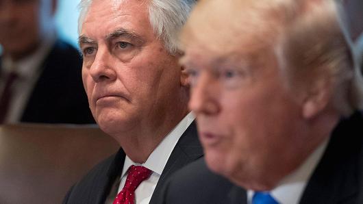 البته رئیسجمهوری آمریکا و وزیر امور خارجهاش بارها بهطور جدی درگیریهایی داشتهاند و حتی در یک جلسه خصوصی تیلرسون، ترامپ را «احمق» خطاب کرده و بهرغم اینکه مدتی است از طرح این موضوع میگذرد، آن را تکذیب نکرده است. در مقابل ترامپ نیز یکبار به قصد تخریب وزیر امور خارجهاش در جلسهای که ترامپ میزبان بحرینیها بود در پاسخ به خبرنگاران که از او پرسیده بودند آیا تیلرسون بهعنوان وزیر امور خارجه در کنارش باقی خواهد ماند به سادگی گفته بود: اوه! او اینجا است. رکس اینجا است.