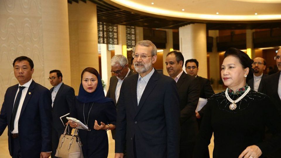 رئیس مجلس شورای اسلامی با رئیس مجلس ویتنام دیدار و گفتگو کرد. علی لاریجانی رئیس مجلس شورای اسلامی روز گذشته ایران را مقصد ویتنام ترک کرد. رئیس مجلس شورای اسلامی یکشنبه شب وارد فرودگاه هانوی ویتنام شد. رئیس مجلس شورای اسلامی در بدو ورود به ویتنام به مقام هوشی مین، رهبر انقلاب ویتنام ادای احترام کرد. در ادامه رئیس مجلس شورای اسلامی با رئیس مجلس ویتنام دیدار و گفتگو کرد. عکاس: محسن نوروزی فرد/مهر