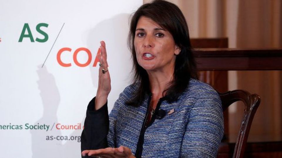 هیلی ادعا کرد که آمریکا "تلاش به تشویق" محمود عباس، رئیس تشکیلات خودگردان فلسطین دارد تا "به پای میز مذاکره بیاید و کاری کند که فلسطینیها و اسرائیلیها حقیقتا به دنبال یک راه حل که بیشترین نفع را برای همه مردم منطقه داشته باشد بگردند".