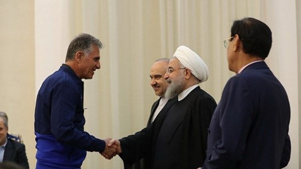 کارلوس کیروش در حاشیه دیدار ملیپوشان فوتبال ایران و اعضای تیم ملی با رئیس جمهور اظهار داشت: در ابتدا از رئیس جمهور تشکر میکنم که از تیم ملی حمایت کرد، این نفراتی که در کنار شما حضور دارند جزو بهترین نفرات ایران هستند و فرزندان ایران محسوب میشوند.