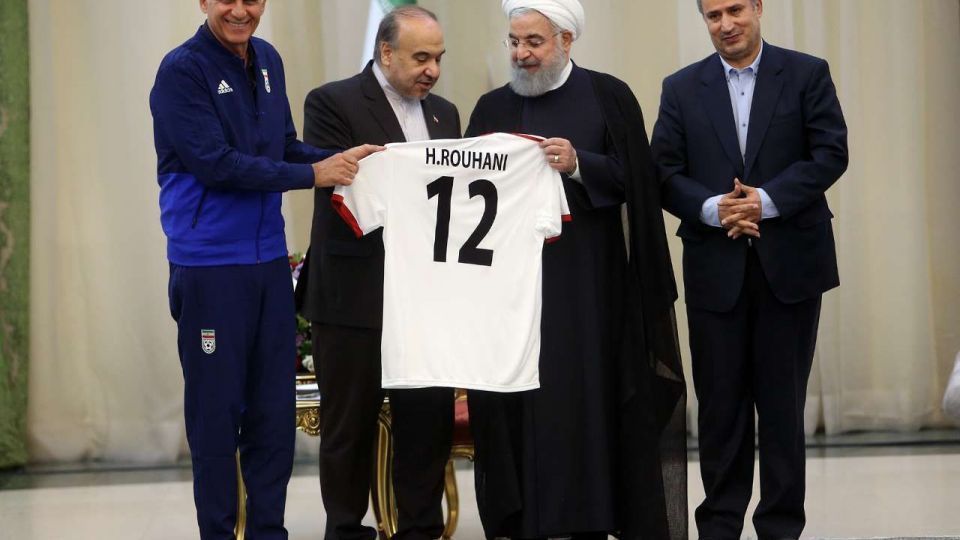 گروه ورزشی الف، 3970230206 ۱ نظر، ۰ در صف انتشار و ۰ تکراری یا غیرقابل انتشاراعضای تیم ملی و مسئولان فدراسیون فوتبال عصر امروز (یکشنبه) با حجت الاسلام والمسلمین «حسن روحانی» رئیس جمهوری دیدار کردند. در این دیدار که در آستانه عزیمت تیم ملی فوتبال ایران به جام جهانی روسیه صورت گرفت، پیراهن شماره 12 تیم ملی به رئیس جمهوری اهدا شد. مسعود سلطانی فر وزیر ورزش و جوانان، مهدی تاج رئیس فدراسیون فوتبال، کارلوس کی روش سرمربی تیم ملی ایران و تنی چند از ملی پوشان از حاضران در این مراسم بودند.