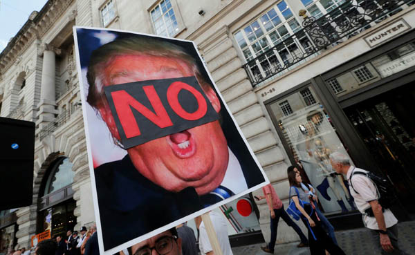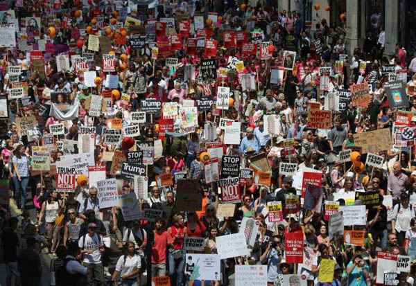همچنین، هزاران تن از مخالفان رییسجمهوری آمریکا روز گذشته پس از طی کردن خیابانهای مرکزی لندن و تجمع در میدان مشهور ترافلگار در شعارهای خود دونالد ترامپ را مایه ننگ و فلاکت در جهان خواندند.
