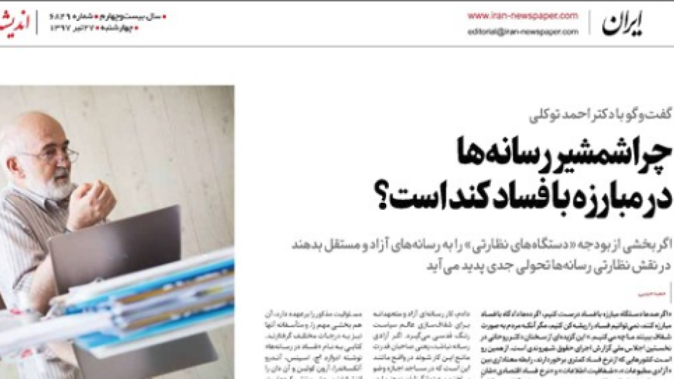 «اگر صدها دستگاه مبارزه با فساد درست کنیم، اگر دهها دادگاه با فساد مبارزه کنند، نمیتوانیم فساد را ریشهکن کنیم، مگر آنکه مردم به صورت شفاف ببینند ما چه میکنیم.» این گزیدهای از سخنان دکتر روحانی در نخستین اجلاس ملی گزارش اجرای حقوق شهروندی است. از همین رو است کشورهایی که از نرخ فساد کمتری برخوردارند، رابطه معناداری بین «آزادی مطبوعات»، «شفافیت اطلاعات» و «نرخ فساد اقتصادی»شان وجود دارد. اخبار را شفاف پیش چشم مردم و مسئولان گذاشتن قطعاً فضا را برای سوء استفادهکنندگان اقتصادی ناامن خواهد کرد. رسانهها اگر قادر باشند چنین «گفتمانی» را شکل دهند، «سلامت اقتصادی» را تضمین خواهند کرد چرا که پوشیده نگه داشتن فساد، بیشک آن را فربه، ساختارمند و پیچیده میکند. بررسی نسبت معکوس «شفافیت اطلاعات با نرخ فساد اقتصادی» موضوع گفتوگوی روزنامه ایران با دکتر احمد توکلی شد. او که ریاست پیشینِ مرکز پژوهشهای مجلس و نمایندگی سابق مجلس شورای اسلامی را در کارنامه کاری خود دارد، اکنون رئیس هیأت مدیره «دیدهبان عدالت و شفافیت» است و خود صاحب امتیاز رسانه خبری- تحلیلی «الف» است. از این رو، برای ما گزینه مناسبی بود برای اینکه این موضوع را با او به بحث گذاریم.