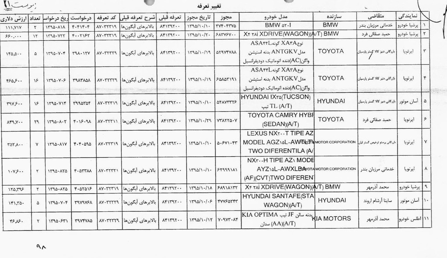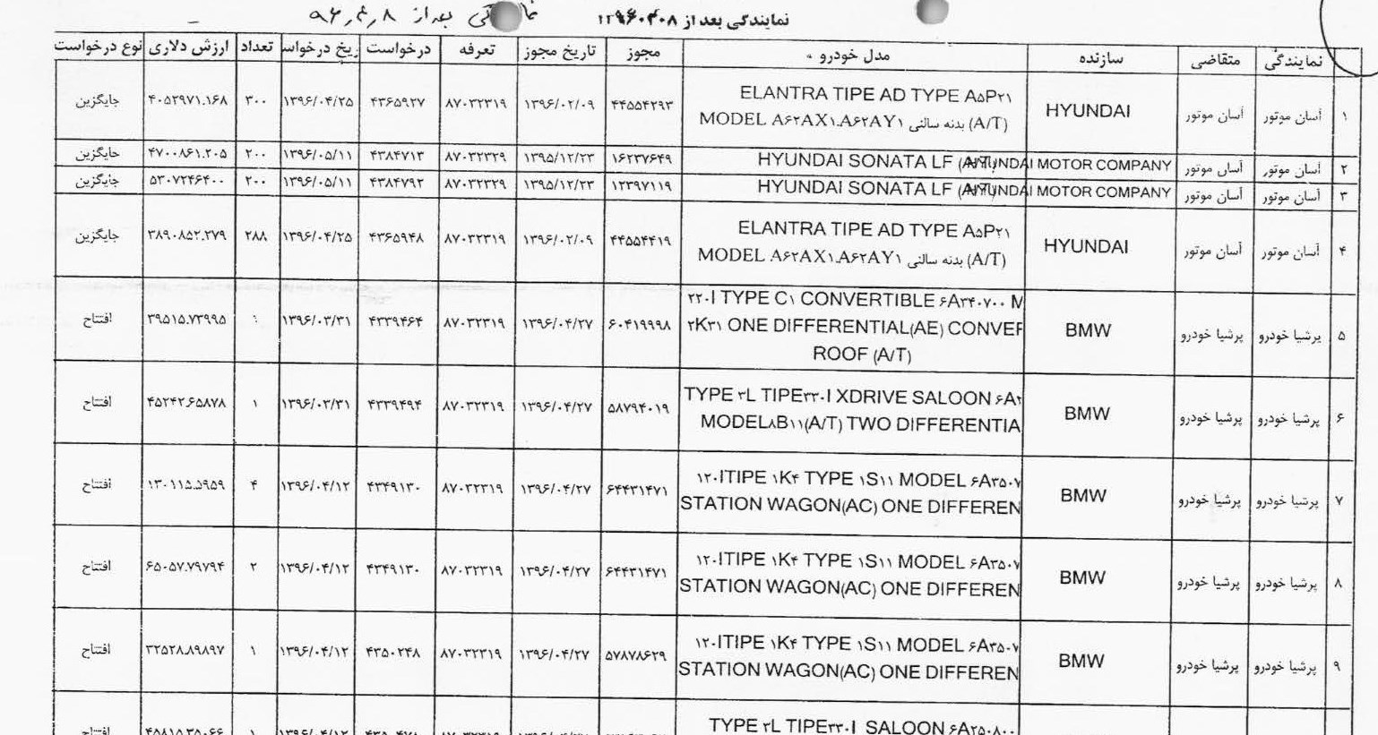 لیست تخلفات ثبت سفارش خودرو که از سال ۹۵ تا ۹۶ انجام شده بود، منتشر شد.