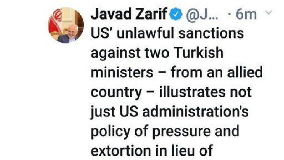تحریمهای غیر قانونی ایالات متحده علیه دو وزیر ترکیه که دولت همپیمان آمریکاست نشان میدهد که نه تنها دولت آمریکا فشار و اخاذی را بجای سیاست ورزی دنبال میکند، بلکه اعتیادش به تحریم هیچ حد و مرزی نمیشناسد.