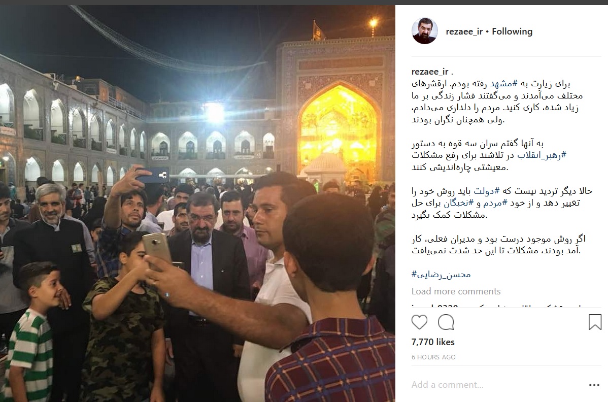 به گزارش الف؛ محسن رضایی دبیر مجمع تشخیص مصلحت نظام با در صفحه اینستاگرامی خود نوشت: برای زیارت به مشهد رفته بودم. ازقشرهای مختلف میآمدند و میگفتند فشار زندگی بر ما زیاد شده، کاری کنید. مردم را دلداری میدادم، ولی همچنان نگران بودند.به آنها گفتم سران سه قوه به دستور رهبر انقلاب در تلاشند برای رفع مشکلات معیشتی چارهاندیشی کنند. حالا دیگر تردید نیست که دولت باید روش خود را تغییر دهد و از خود مردم و نخبگان برای حل مشکلات کمک بگیرد. اگر روش موجود درست بود و مدیران فعلی، کار آمد بودند، مشکلات تا این حد شدت نمییافت.