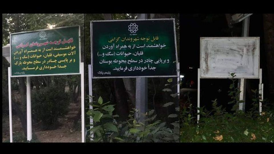 سرانجام الهام فخاری ـ رییس کمیته اجتماعی شورای شهر تهران ـ ۲۴ مرداد ماه از اصلاح تابلوهای ورودی بوستانها که بر اساس آن ورود آلات موسیقی ممنوع است، خبر داد.