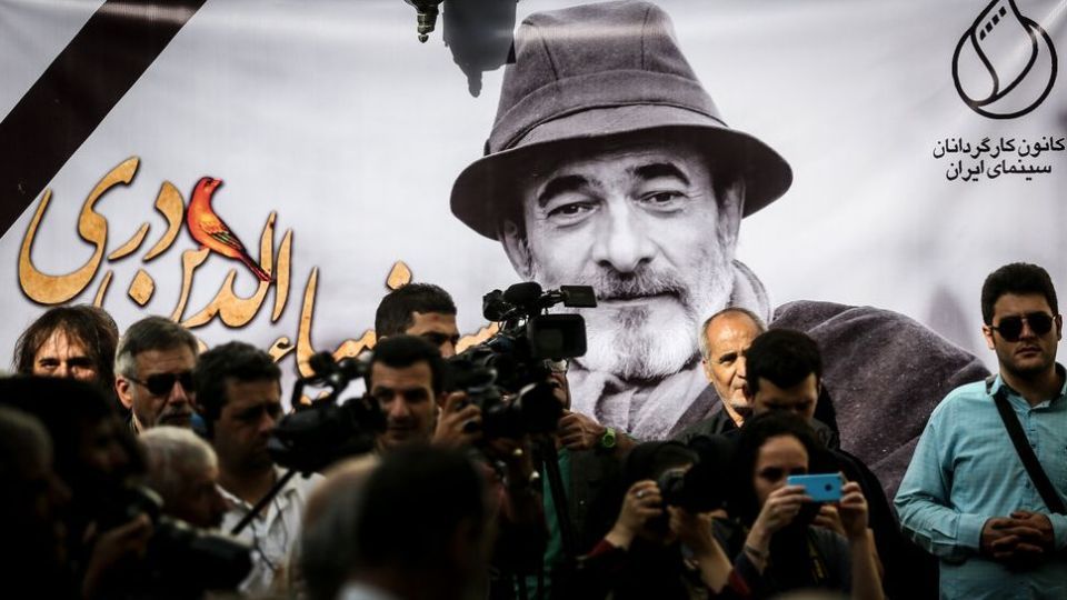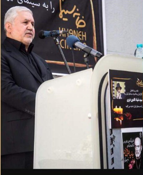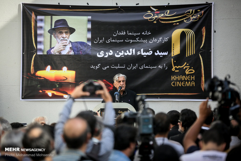 پیکر زنده یاد ضیاالدین دری ساعت ۹:۱۹ وارد حیاط خانه سینما شد.