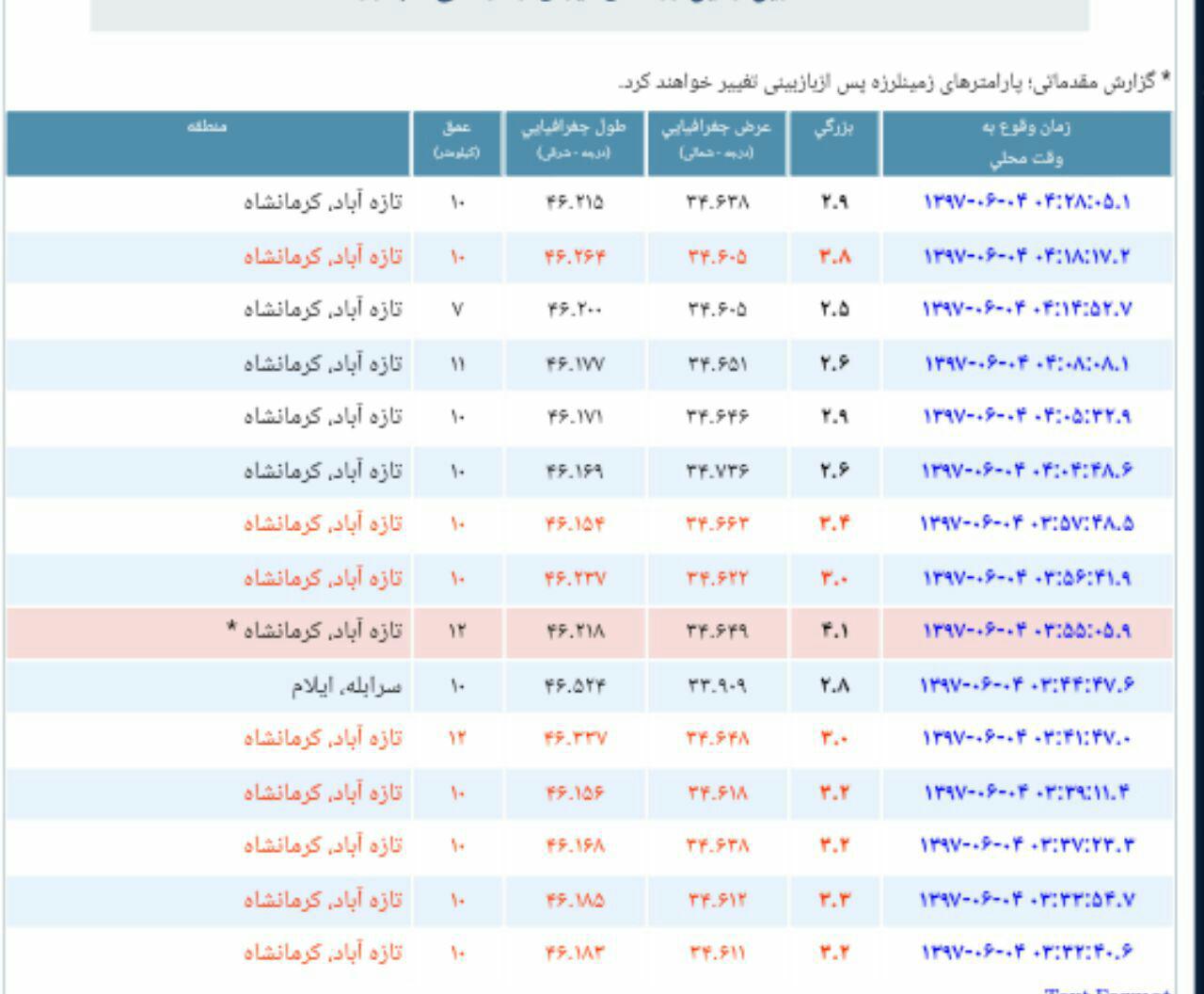 ۹:۳۰- پس از وقوع زلزله ۵.۹ ریشتری تازه آباد تا کنون ۴۳ پس لرزه به ثبت رسیده است.