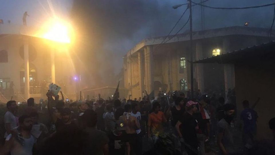 رسانهها شامگاه جمعه از تعرض گروهی از افرادی که «معترضان» خوانده شدهاند به کنسولگری جمهوری اسلامی ایران در بصره خبر دادند. تصاویر منتشر شده حاکی است مهاجمان کنسولگری ایران در این شهر را به آتش کشیدهاند.