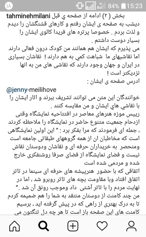 اما ساعتی بعد تهمینه میلانی با انتشار پست دیگری در اینستاگرام کپی بودن یک نقاشیاش را پذیرفت و گفت که این اثر از نمایشگاه خارج شده است.