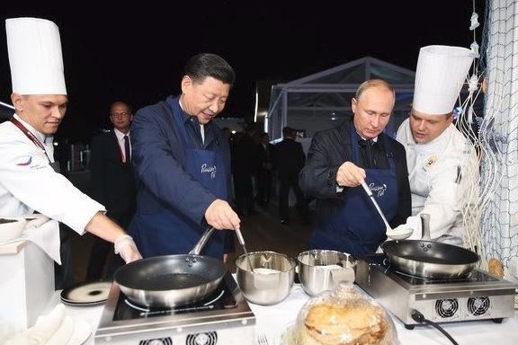پوتین در حاشیه این اجلاس به همراه شی جین پینگ آشپزی کرد. آنها در تصویر زیر در حال پختن پنکیک هستند.
