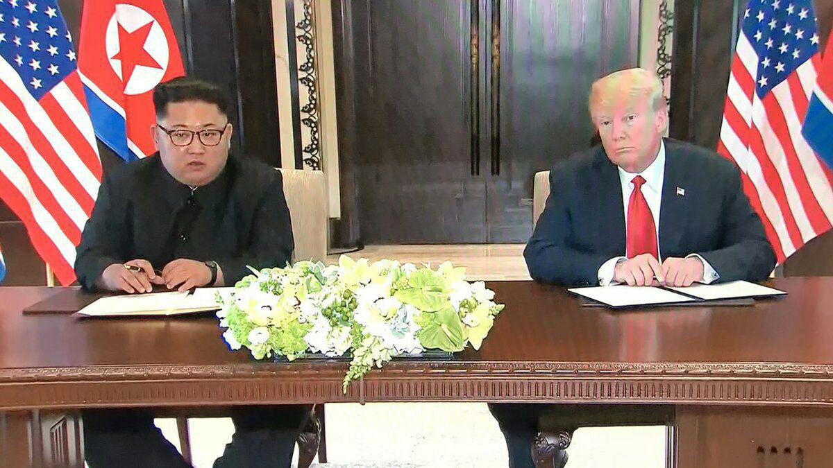 امضای سند صلح با بندهایی مبهم و کلیبر اساس مفاد سندی که ترامپ و اون در سنگاپور امضا کرده بودند، آمریکا به ارائه «تضمینهای امنیتی» به کره شمالی و برقراری «یک رابطه جدید» بین دو کشور متعهد شد، درمقابل هم خلع سلاح اتمی شبه جزیره کره در دستور مذاکره سران دو کشور قرار گرفت و پیونگ یانگ ملزم به امتناع از ادامه آزمایش های هسته ای شد تا جایی که آمریکا به کره شمالی قول برادری داد که دیگر رزمایشهای نظامی مشترکی با متحدین منطقهای خود از جمله سئول و توکیو انجام ندهد.