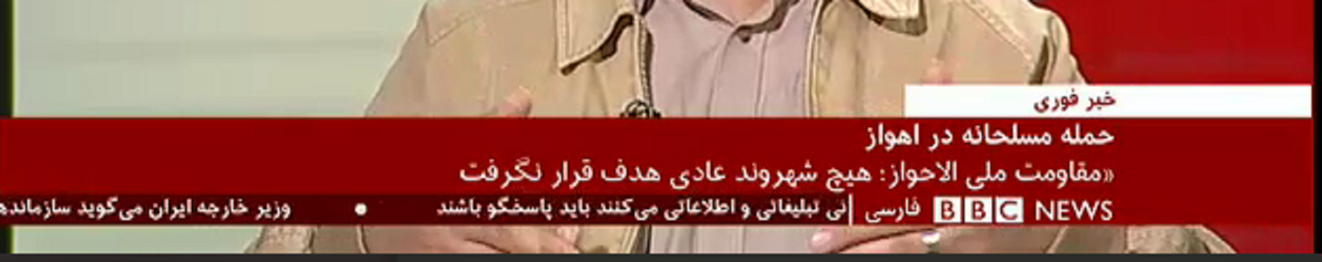به گزارش الف شبکه فارسی زبان ایران اینتر نشنال سخنگوی یک گروه تروریستی را پشت خط برنامه زنده خود میآورد به او خوش آمد میگوید و وی نیز مسولیت کشتار اهواز را رسما به عهده میگیرد و از این جنایت دفاع میکند .