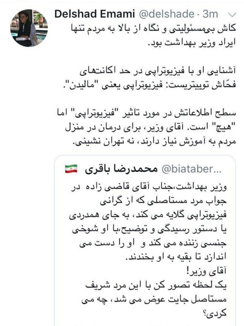 این نحوه پاسخگویی وزیر دولت دوازدهم با واکنشهای بسیاری از سوی مردم و کاربران فضای مجازی و همچنین جامعه فیزیوتراپی کشور همراه بود که برخی از آنها را در ادامه میخوانید: