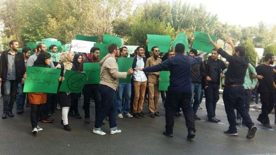 این دانشجویان با سر دادن شعارهایی نظیر "صدامون رو بریدند با رایمون پز میدن"، "روحانی بشنو صدای ملت"، "واعظی، استعفا استعفا" و "وزیر بیکفایت استعفا استعفا" نسبت به عملکرد دولت دوازدهم اعتراض کردند.