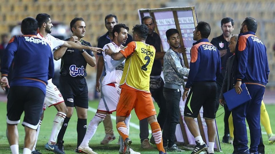 درست زمانی که بازیکن سایپا از گل زده خود خوشحال بود، یکی دو بازیکن پرسپولیس به سمت او رفتند و نسبت به حرکاتی که مقابل هوادارانشان انجام داده بود اعتراض کردند. همین اعتراض حمیدرضا طاهرخانی به محمدرضا سلیمانی بازیکن سایپا کافی بود تا درگیری لفظی در زمین شکل بگیرد و در ادامه با دخالت صادق بارانی و همین طور شجاع خلیل زاده درگیری لفظی شدت پیدا کند.