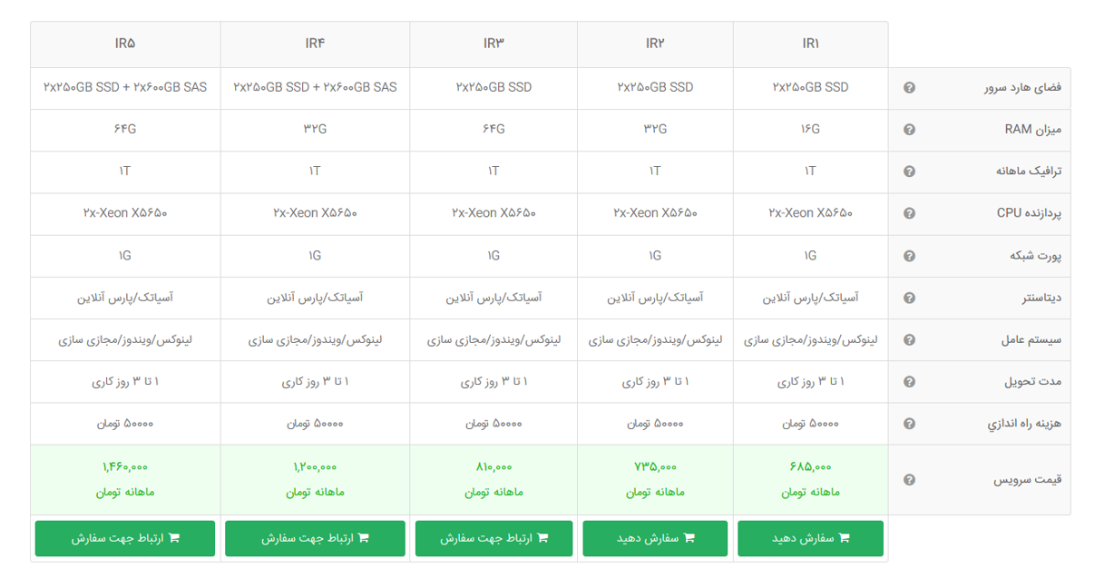 مشاهده پلن های سرورهای اختصاصی ایران (لطفا برای مشاهده جزئیات بر روی عکس کلیک کنید)