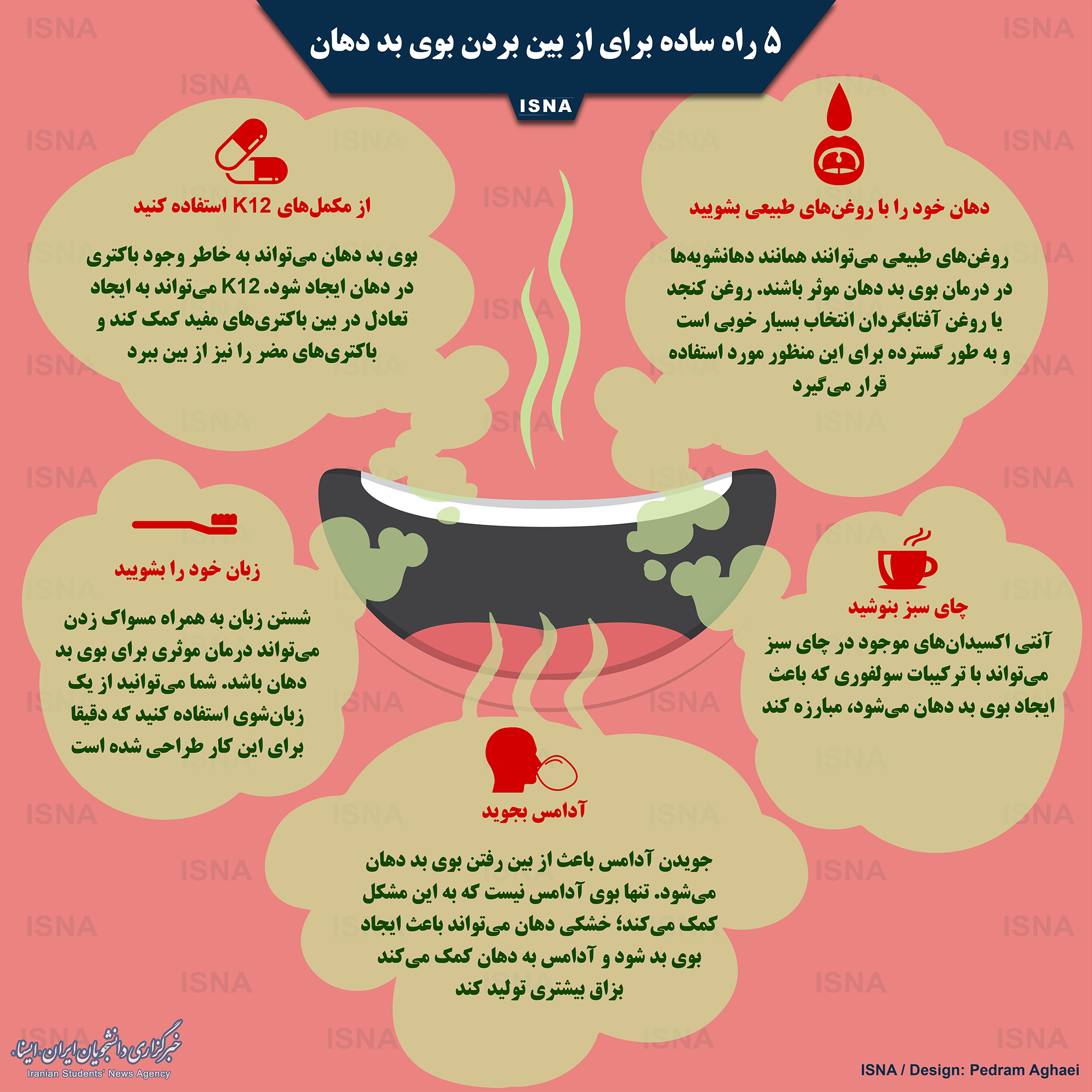 اینفوگرافی/ ۵ راه ساده برای از بین بردن بوی بد دهان