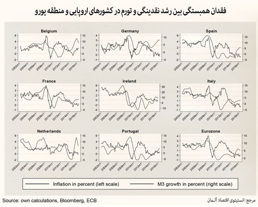 در ۵۰ سال اخیر حجم نقدینگی عربستان سعودی ۷۵۰ برابر (۲۵ برابر آمریکا) شد، اما پول ملی این کشور ۱۷درصد در برابر دلار آمریکا تقویت شد. در دورههای زمانی، اغلب کشورها دارای نرخهای رشد نقدینگی به مراتب بالاتر از نرخ افزایش ارز هستند. به عنوان مثال در دوره ۲۰۰۱-۱۵ میلادی، نرخ رشد نقدینگی کشورهای به ترتیب ویتنام، چین، روسیه، امارات متحده عربی، هند، پاکستان برزیل، عربستان سعودی و ترکیه، بین ۵ تا ۱۸ برابر رشد نرخ ارز بود. گزارش انستیتوی اقتصاد آلمان نشان میدهد که در سالهای اخیر همبستگی بین رشد حجم نقدینگی و نرخ تورم در کشورهای منطقه یورو وجود نداشته است.