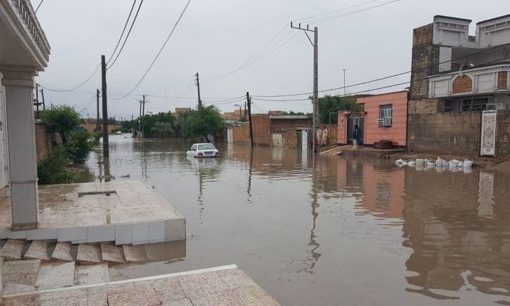 آبگرفتگی معابر و خیابانها در سوسنگرد پس از بارش شدید باران