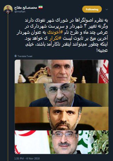 یک فعال رسانه در واکنش به انتخابهای شورای شهر تهران برای مدیریت پایتخت در توییتی نوشت: