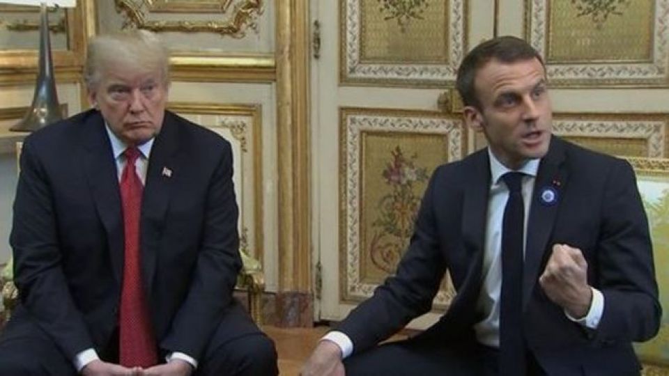 ترامپ در بیانیهای روز جمعه دقایقی بعد از ورود به پاریس، طرح ماکرون برای ایجاد ارتش اتحادیه اروپا را «بسیار توهینآمیز» خواند. وی در توئیترش نوشت: «رئیسجمهور فرانسه ماکرون گفته اروپا برای محافظت از خودش در برابر آمریکا، چین و روسیه ارتش خودش را تشکیل خواهد داد. بسیار توهینآمیز است، اما شاید بهتر باشد اروپا اول سهم خودش از ناتو را بپردازد.»