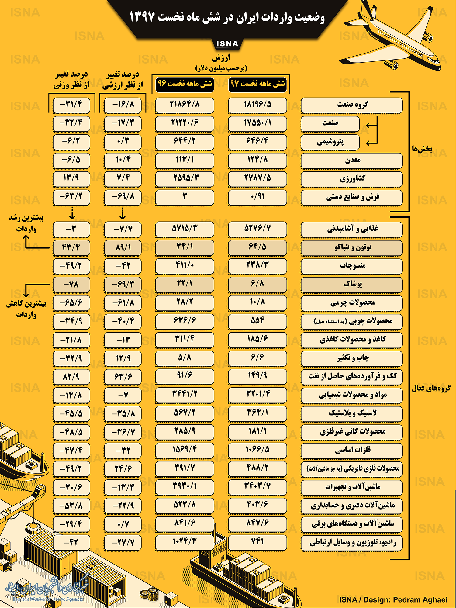 اینفوگرافی/ وضعیت واردات ایران در شش ماه نخست ۱۳۹۷