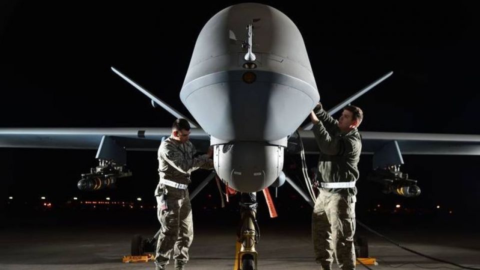 پهپاد MQ-۱ نزدیک تر و MQ-۹ دورتر از دوربین