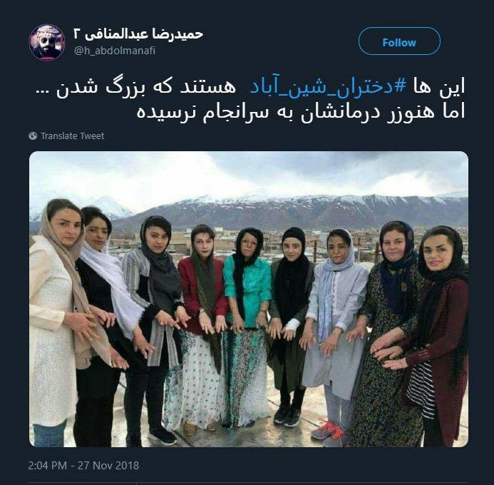 یک کابر فضای مجازی در صفحه شخصی خود در توییتر تصویری از دختران شین آبادی را به اشتراک گذاشت و نوشت:
