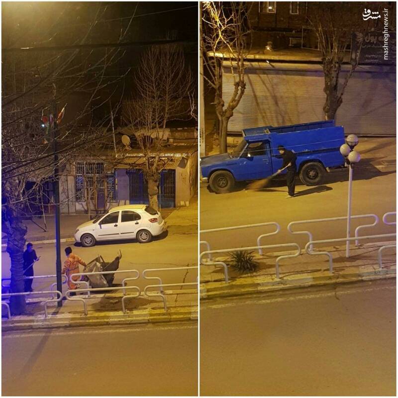 یکی از کاربران توییتر با انتشار این عکس نوشت: " پسری که برای زودتر برگشتن پدر پاکبانش به خانه به یاری او شتافت..."
