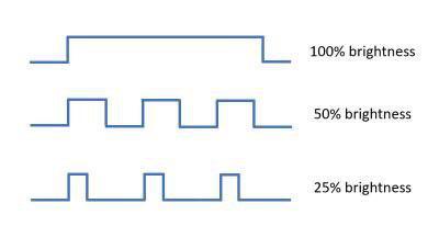 به علت فرکانس بسیار بالای پالسهای نور (معمولاً بالای 200Hz)، چشم انسان قادر به تشخیص فواصل میان پالسها نیست. اما چشم تلاش میکند تا میانگینی از خاموش و روشن شدنهای مکرر نمایشگر را ببیند. بنابراین نسبت خاموش و روشن بودن نمایشگر، میزان روشنایی آن را تعیین میکند.